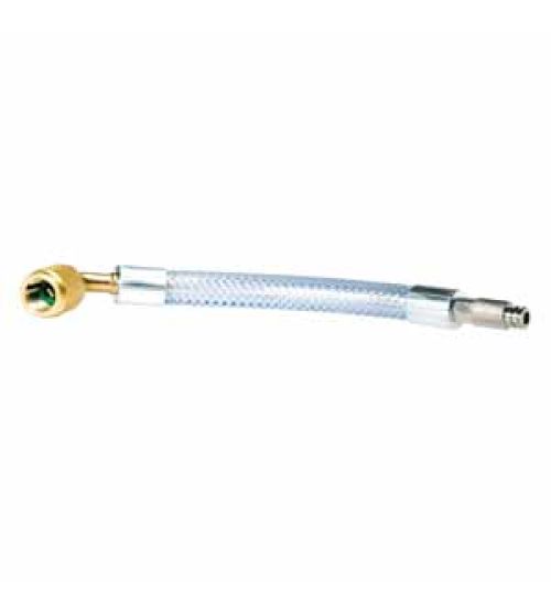 Специальный многоразовый переходник, снабженный обратным клапаном, позволяет безопасно подсоединить картридж напрямую к порту низкого давления системы/кондиционера с фреоном R-134A.