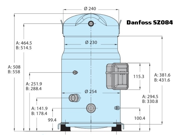Компрессор спиральный Danfoss Performer SZ084S4VC (SZ084-4VI) под пайку (R404a/R507/R134a/R407c)