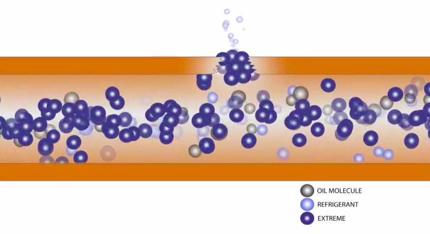 EXTREME обнаруживает утечку фреона и герметизирует ее перманентно, не вступая в химическую реакцию с влагой или кислородом. EXTREME герметизирует утечки фреона, максимальный размер которых не превышает 0,05 мм.