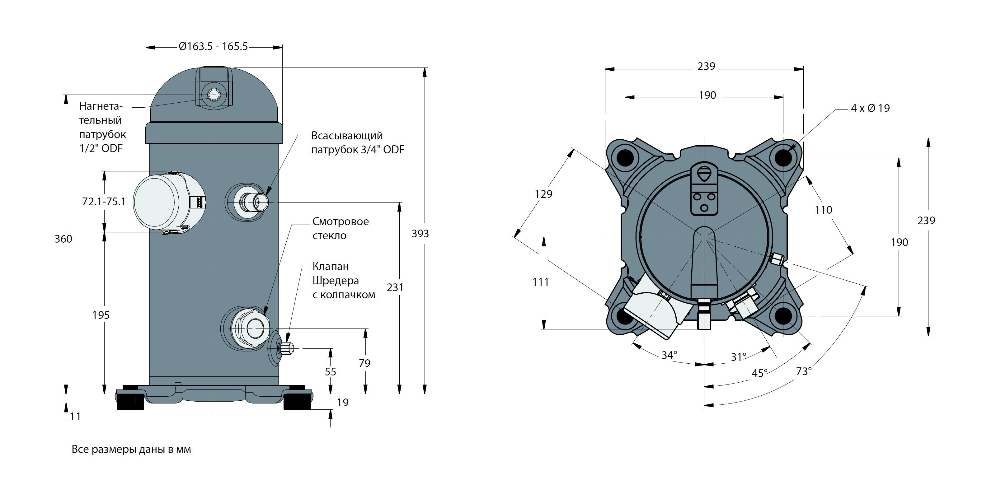 • Выходы: пайка (всасывающий патрубок - 3/4", нагнетающий - 1/2")