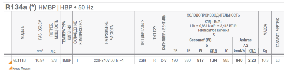 • Особенности: самый эффективный из серии высокоэффективных компрессоров на пропане (R290) и изобутене (R600a)