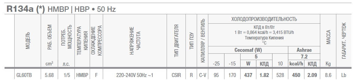 • Особенности: самый эффективный из серии высокоэффективных компрессоров на пропане (R290) и изобутене (R600a)