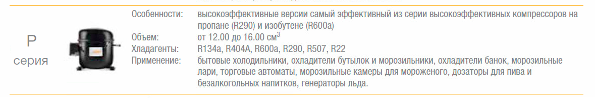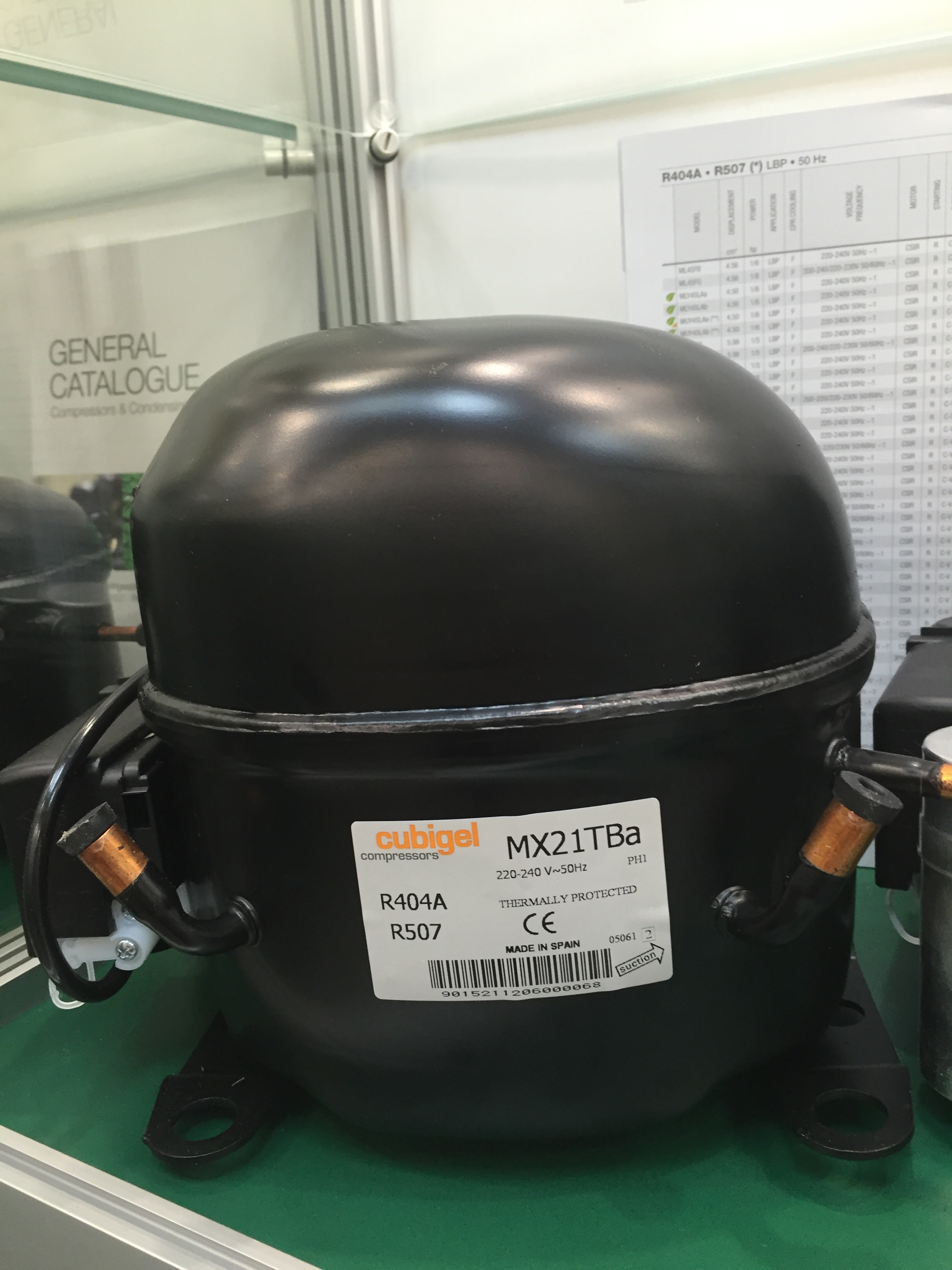 Испанский бренд предлагает более чем 500 различных моделей холодильных (герметичных) компрессоров, с рабочим объемом от 2,4 см3 до 34 см3, использующих большинство хладагентов (R134, R404, R507, R290, R600 и даже R1234yf) и типов электропитания для любого применения (LBP, HMBP, HBP).