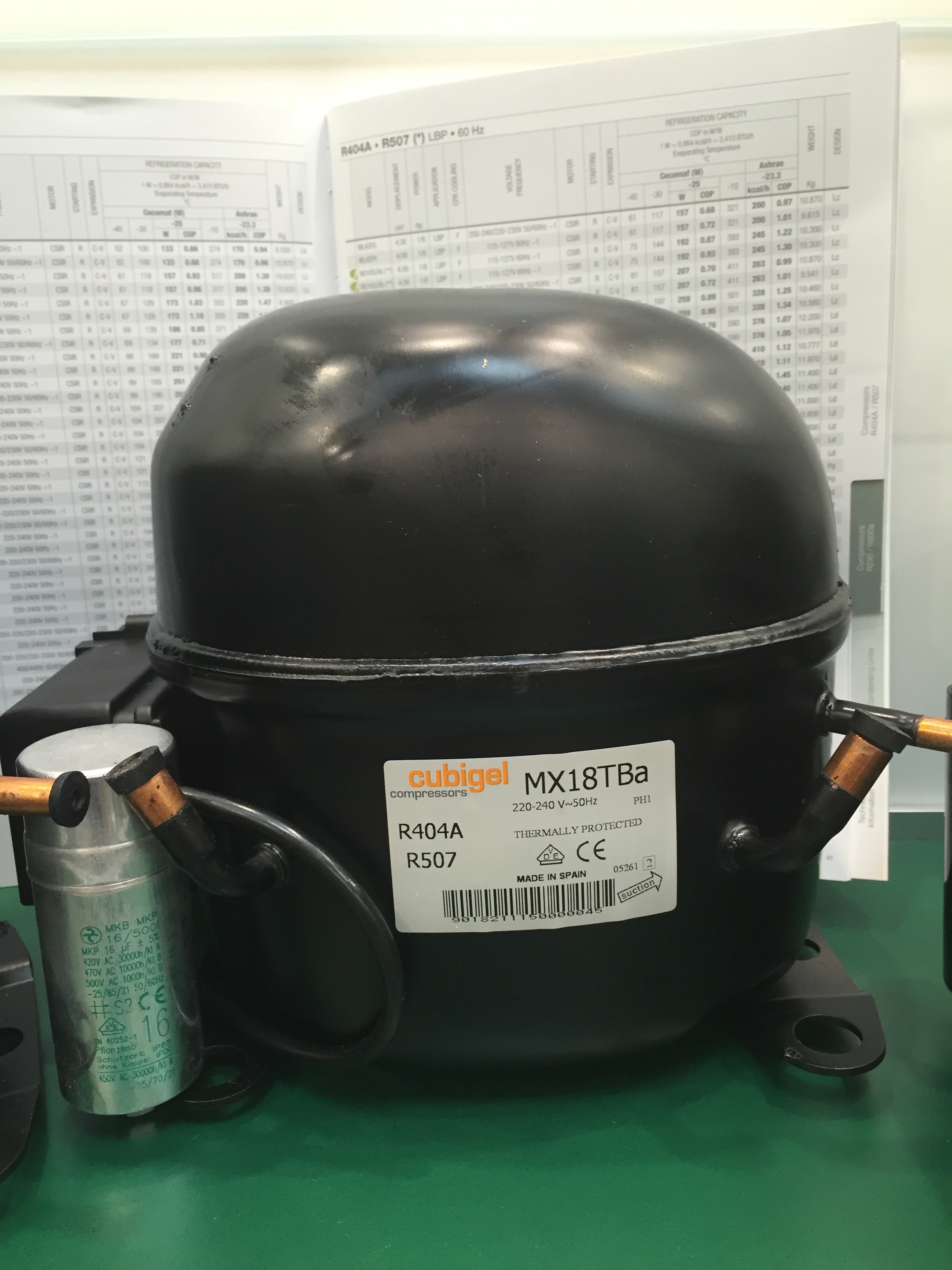 Испанский бренд предлагает более чем 500 различных моделей холодильных (герметичных) компрессоров, с рабочим объемом от 2,4 см3 до 34 см3, использующих большинство хладагентов (R134, R404, R507, R290, R600 и даже R1234yf) и типов электропитания для любого применения (LBP, HMBP, HBP).