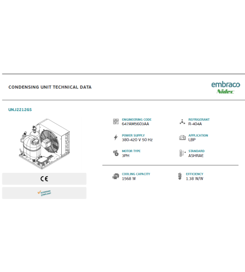 Компресорно-конденсаторний агрегат USNJ2212GS (3 PHASE) Embraco Aspera