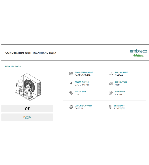 Компресорно-конденсаторний агрегат USNJ9238GK (220V) Embraco Aspera