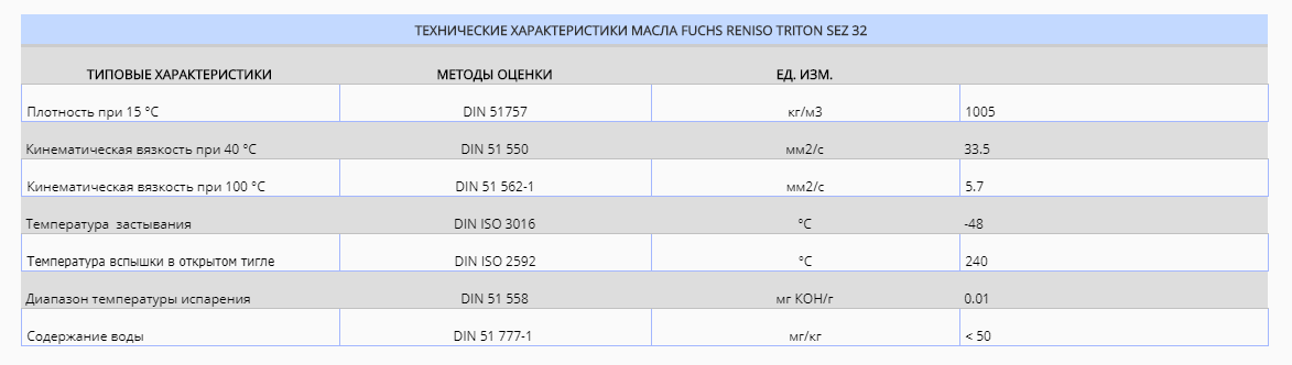 Примечание: Ввиду высокой полярности, масла TRITON SE имеют более высокую гигроскопичность, чем масла на минеральной основе и синтетических углеводородов. Поэтому во время заправки этими маслами на заводах, контакт масел с воздухом должен быть минимальным. Открытые емкости следует использовать в течении одного рабочего дня.