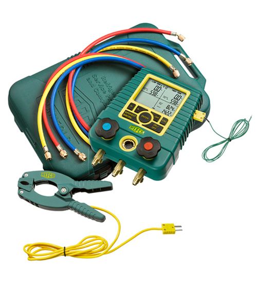Удобный в использовании 2-вентильный цифровой манометрический коллектор для эффективной и безопасной пусконаладки и обслуживания холодильных систем и систем кондиционирования. Новое поколение DIGIMON привлекает компактным дизайном и прочной конструкцией. ЖК-дисплей позволяет легкое считывание данных по давлению и температуре, а также данных по перегреву, переохлаждению, глубине вакуума и наличию утечки в системе. В аналоговом режиме цифровые данные дополнительно отображаются графически. DIGIMON соответствует всем важнейшим требованиям к цифровому манометрическому коллектору. Среди дополнительных принадлежностей – зонд-зажим (К-типа) для измерения поверхностной температуры и внешний сенсор вакуума.