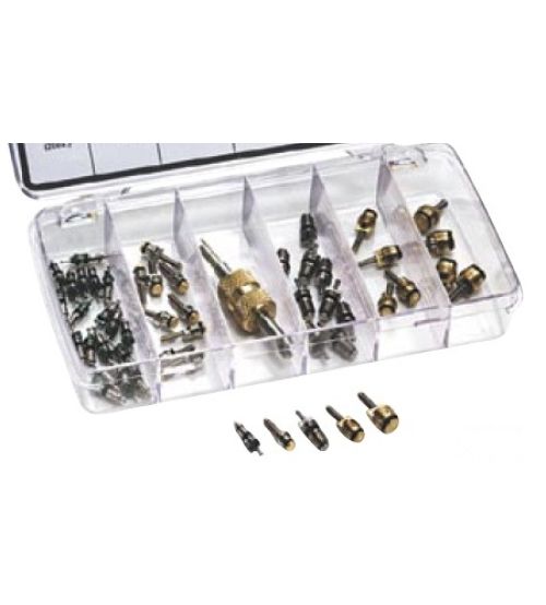 Набор ниппелей для a/c R12/R134А - 5 видов (50 шт.) и 1 универсальный ключ для ниппелей.
