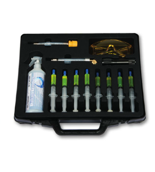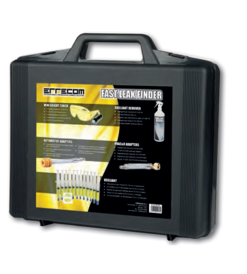 FAST LEAK FINDER – универсальный набор как для автокондиционеров, так и для установок промышленного холода, включающий все необходимое для добавления красителя в установку, ее обследования и последующего удаления остатков красителя.
