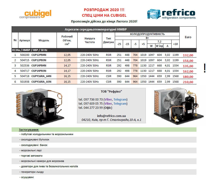 РОЗПРОДАЖ CUBIGEL 2020 | Конденсаторні агрегати на R134a за СПЕЦ ЦІНОЮ до кінця Лютого