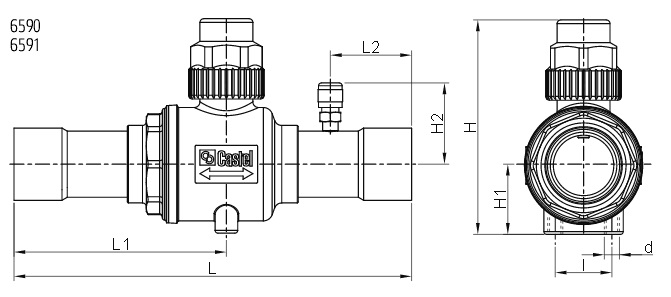 • 6590 (полнопроходное отверстие) и 6591 (уменьшенный порт) без штуцера для внешнего соединения;