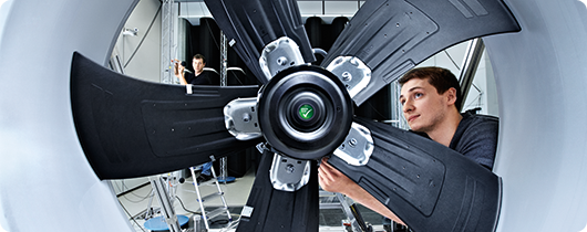 • ВЫСОКИЙ КПД. С одной стороны, несущая структура из алюминия обеспечивает высокую прочность, а, с другой стороны, нанесенная на него оболочка из усиленного стекловолокном пластика обеспечивает возможность придания лопатке произвольной формы. И если металл обрабатывается только гибкой, тиснением и штамповкой, то лопатки вентилятора со структурой HyBlade® допускают очень детальную оптимизацию, например, создание винглетов на концах лопаток. При использовании HyBlade® они обеспечивают еще более высокие значения аэрогидродинамического КПД.