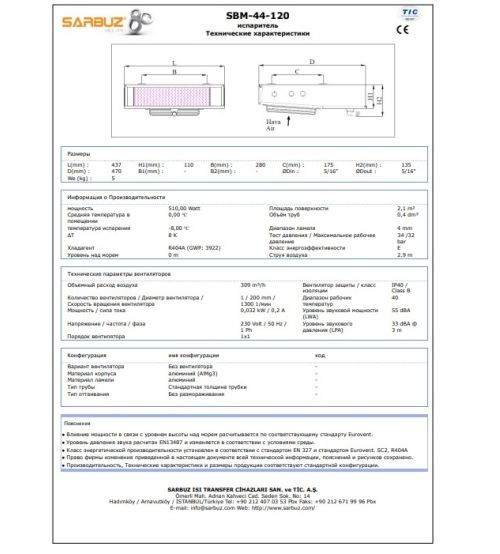 • При tc=0°C, DT1=10K, R404a 750 Вт  (SC1)