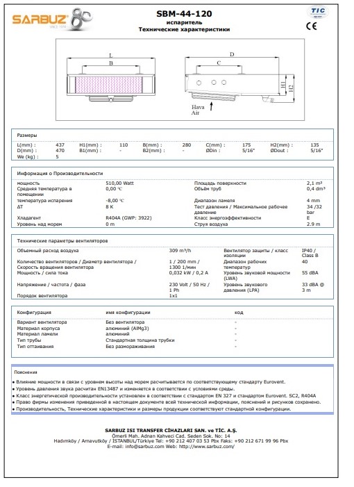 • При tc=-8°C, DT1=8K, R404A 510 Вт   (SC2)