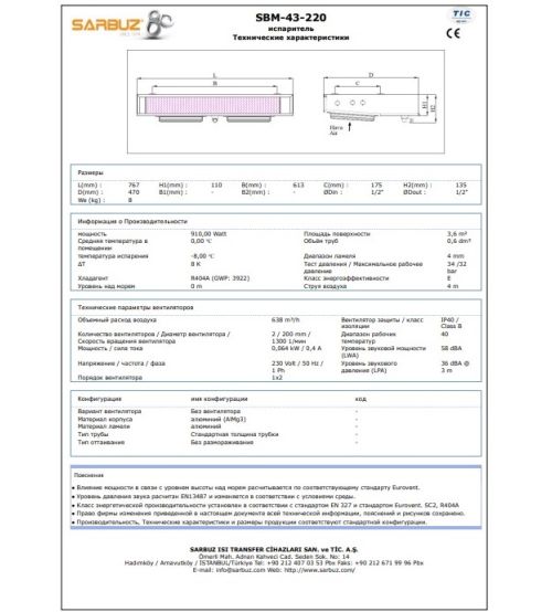 Воздухоохладитель потолочный Sarbuz SBM-43-220