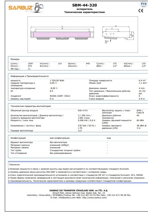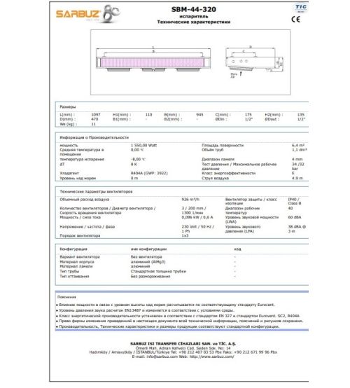 • При tc=0°C, DT1=10K, R404a 2290 Вт  (SC1)