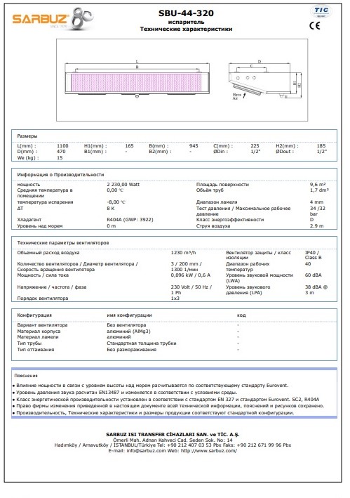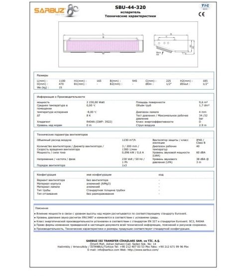 • При tc=0°C, DT1=10K, R404a 3280 Вт  (SC1)