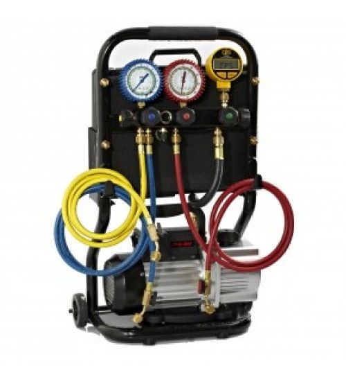 Зарядна станція Pro-Set® Portable містить усі необхідні інструменти, необхідні для повного розвантаження системи та подальшого заряджання в одному компактному мобільному пристрої. Станція включає сервісний колектор Vortech, вакуумний насос Pro-Set, ваги заправні Compute-A-Charge® і зарядні шланги преміум-класу.