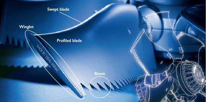Сова тихий хищник в небе благодаря своим уникальным перьям. Ее бесшумный полет - это следствие формы перьев и зубцов на задней кромке крыла, именно это представило интерес для Ziehl-Abegg. Компания создала новую геометрию лопасти вентилятора - конец лопасти имеет форму крыла совы с зубчатым задним краем.